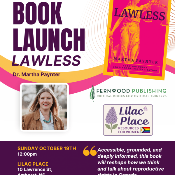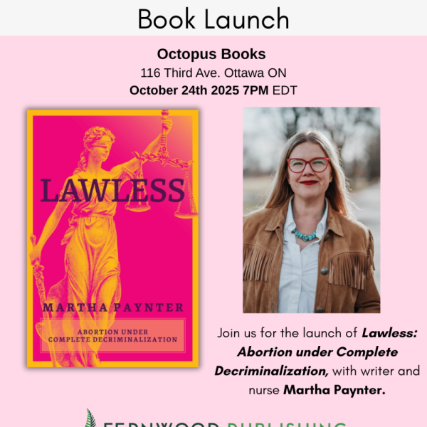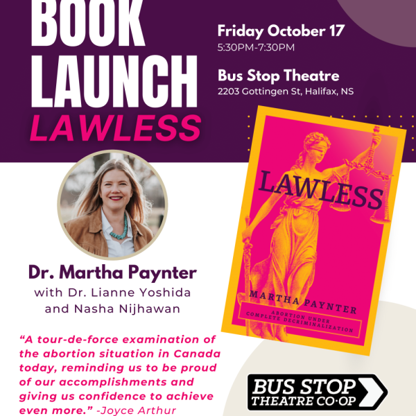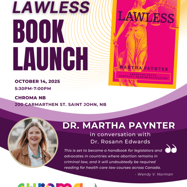 Join Dr. Martha Paynter in conversation with Dr. Rosann Edwards for the Saint John launch of Lawless: Abortion Under Complete Decriminalization
