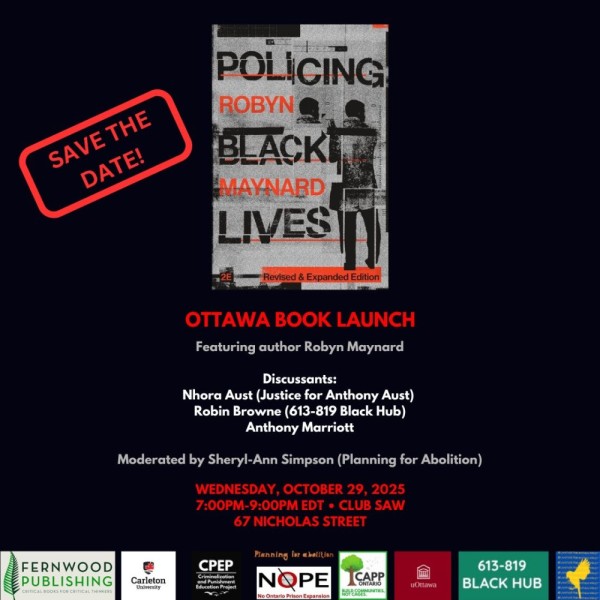 Join us for an evening with award-winning and best-selling author and scholar Robyn Maynard as she launches the revised and expanded edition of her book “Policing Black Lives: State Violence in Canada from Slavery to the Present” on unceded and unsurrendered Algonquin Anishinaabe Territory | in Ottawa.