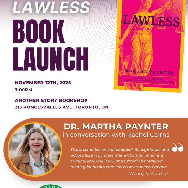 Join Dr. Martha Paynter in conversation with Dr. Lianne Yoshida and Nasha Nijhawan for the launch of Lawless: Abortion Under Complete Decriminalization