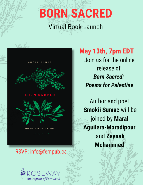 Join us for the online release of Born Sacred: Poems for Palestine by Smokii Sumac.