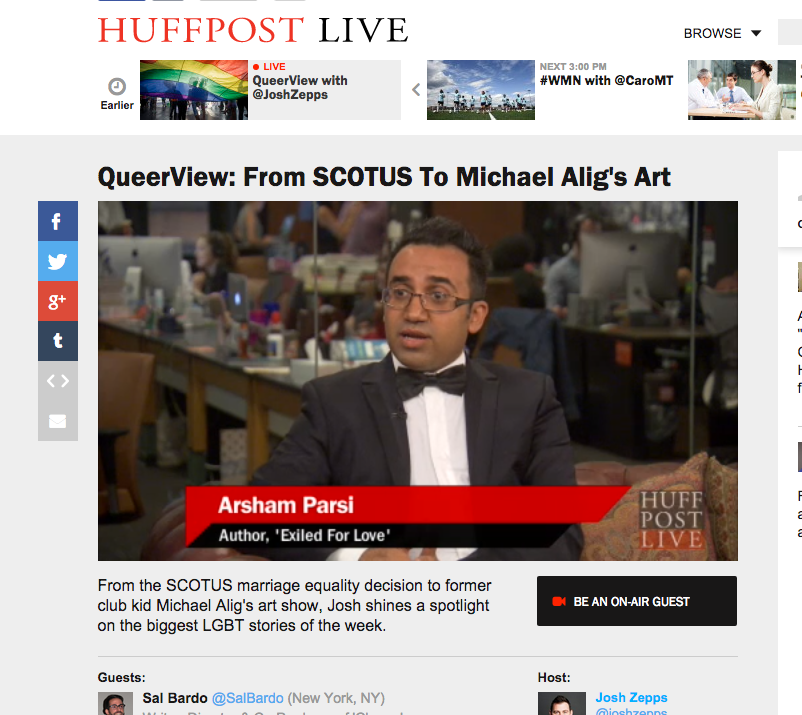 Arsham was also featured on Huffington Post Live, where he spoke about his life and work.